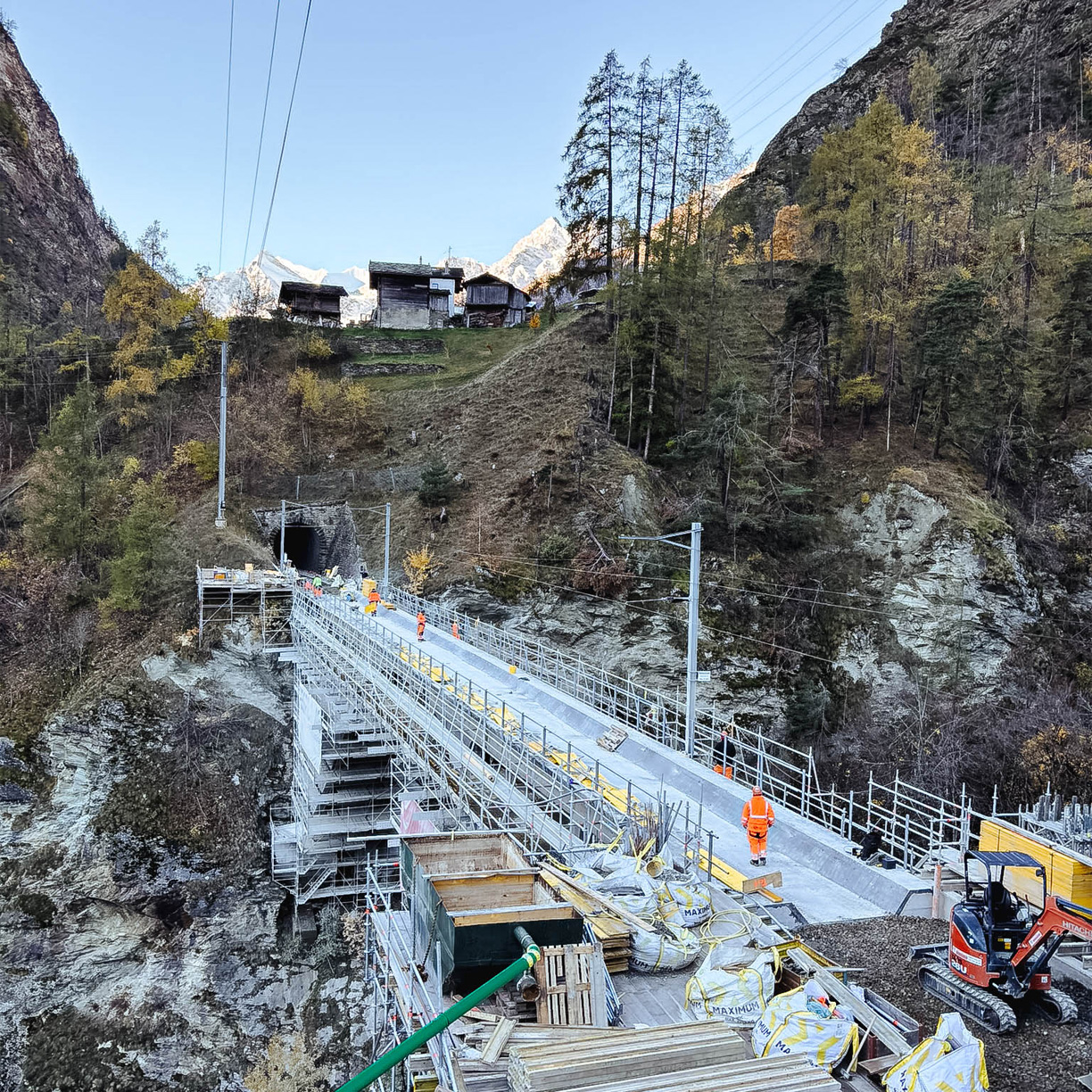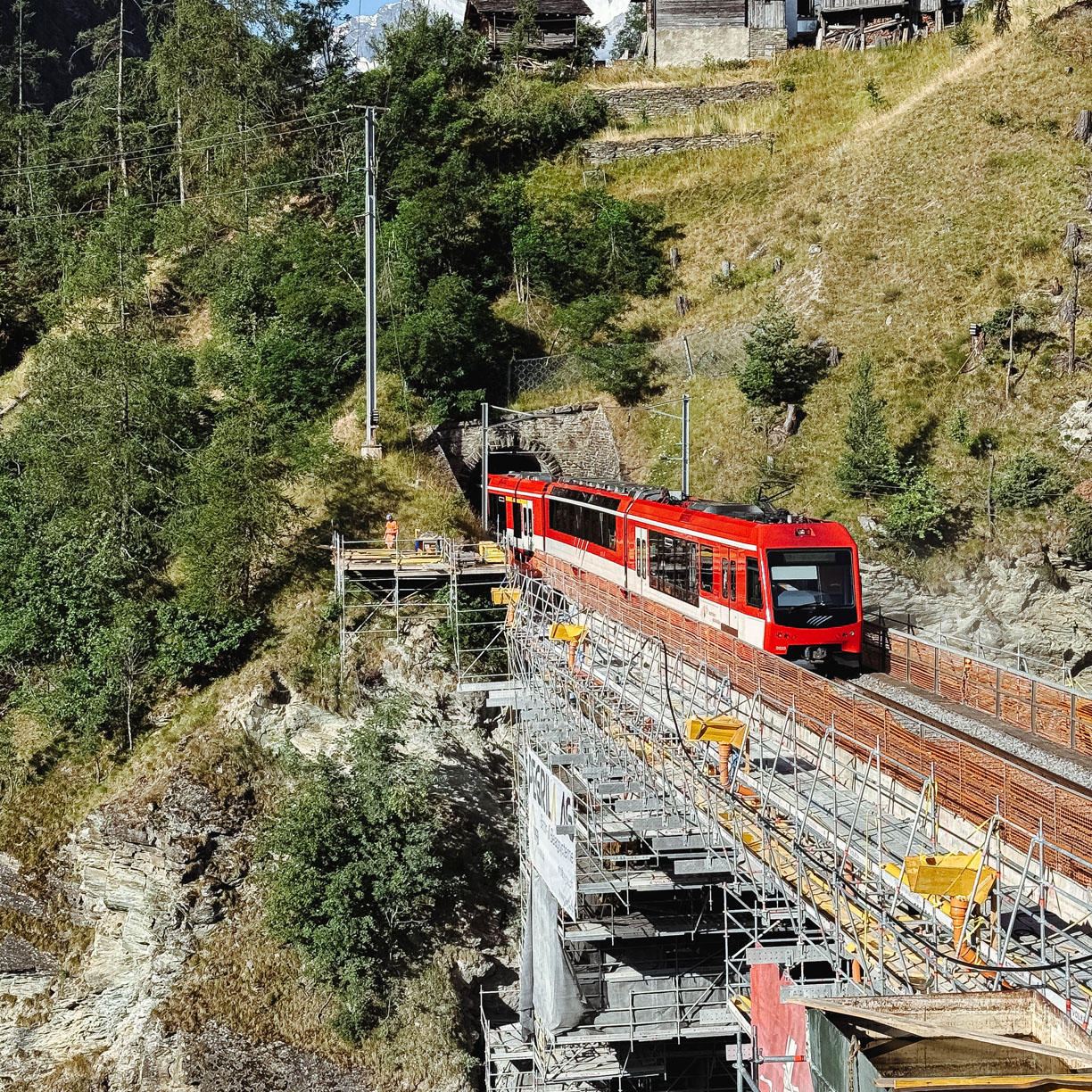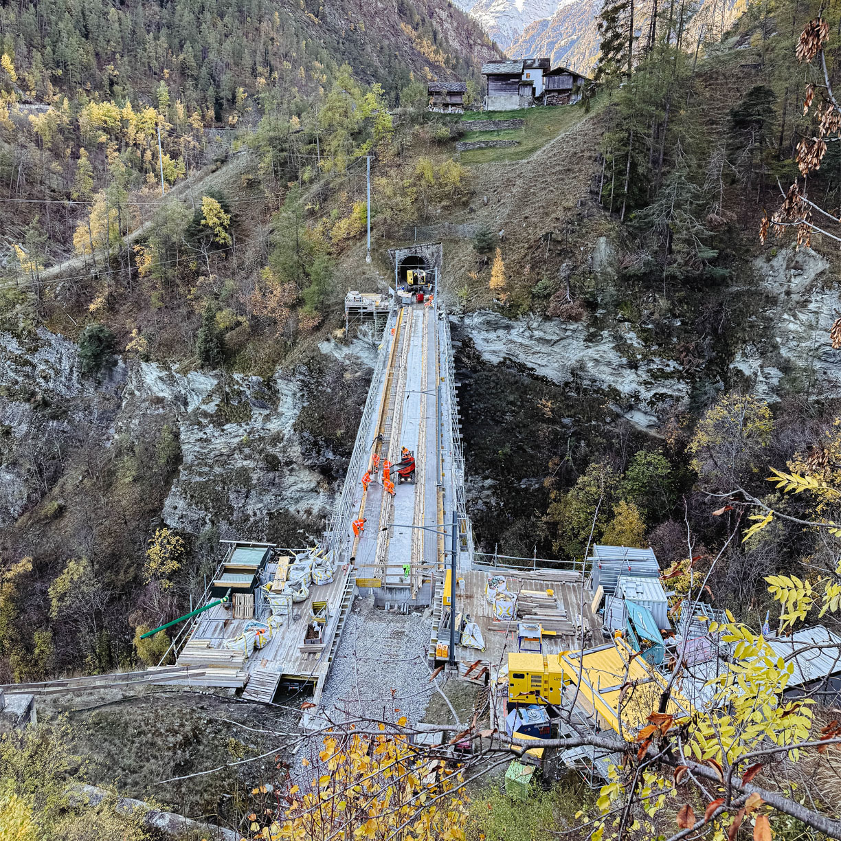 Dans le cadre d’un projet de remise en état du tronçon ferroviaire entre Viège et Zermatt, des interventions ont été nécessaire sur plusieurs ponts et tunnel vers Stalden.