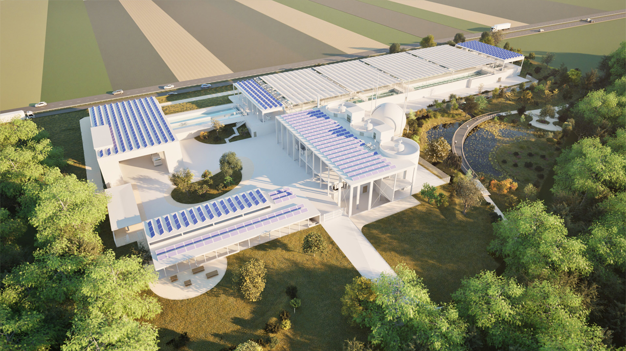 The new WWTP will be organised around five functional units: pretreatment, biological basins, micropollutant treatment, sludge treatment and the administrative building. Two pumping stations will convey wastewater from the lakeside plant to the new site. Construction requires an excavation depth of 4 to 5 m and approximately 40,000 m³ of material, part of which will be reused as backfill. The tanks and underground structures will be built with watertight reinforced and prestressed concrete, while above-ground buildings will be constructed with locally sourced timber from member municipalities.