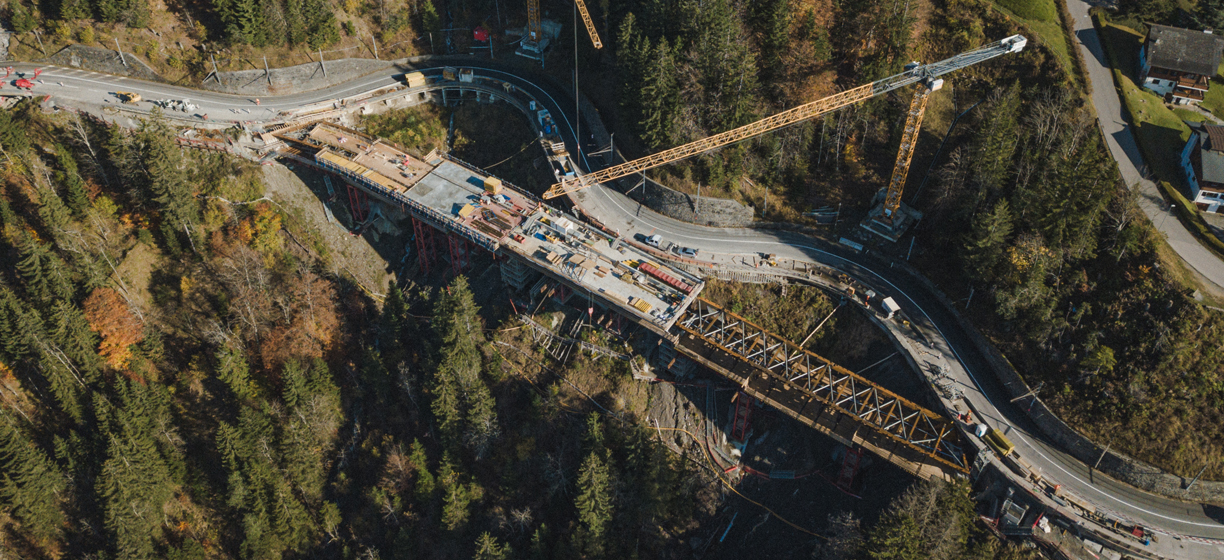 Le pont projeté d’une longueur de 160.60 m avec trois travées de 65.80 m, 40.80 m et 54 m, supporte la voie ferrée, la route cantonale et le trottoir avec des éléments de séparation et de sécurité d’une largeur de 14.70 m. Le tablier est une structure mixte composée d’une dalle en béton armé appuyée sur deux poutres à treillis en acier reliées par des entretoises inférieures et supérieures. Les culées et les piles en béton sont fondées sur des puits pleins de section elliptique d’une profondeur de 16-18 m pour contrer d’éventuels mouvements de la couche superficielle du sol. La conception du pont résulte de la synthèse des contraintes liées à la topographie, à la géologie, à la géotechnique, à la géométrie du tracé, à l’isolation électrique de la structure et à la problématique des dilatations du pont et de la voie ferrée.